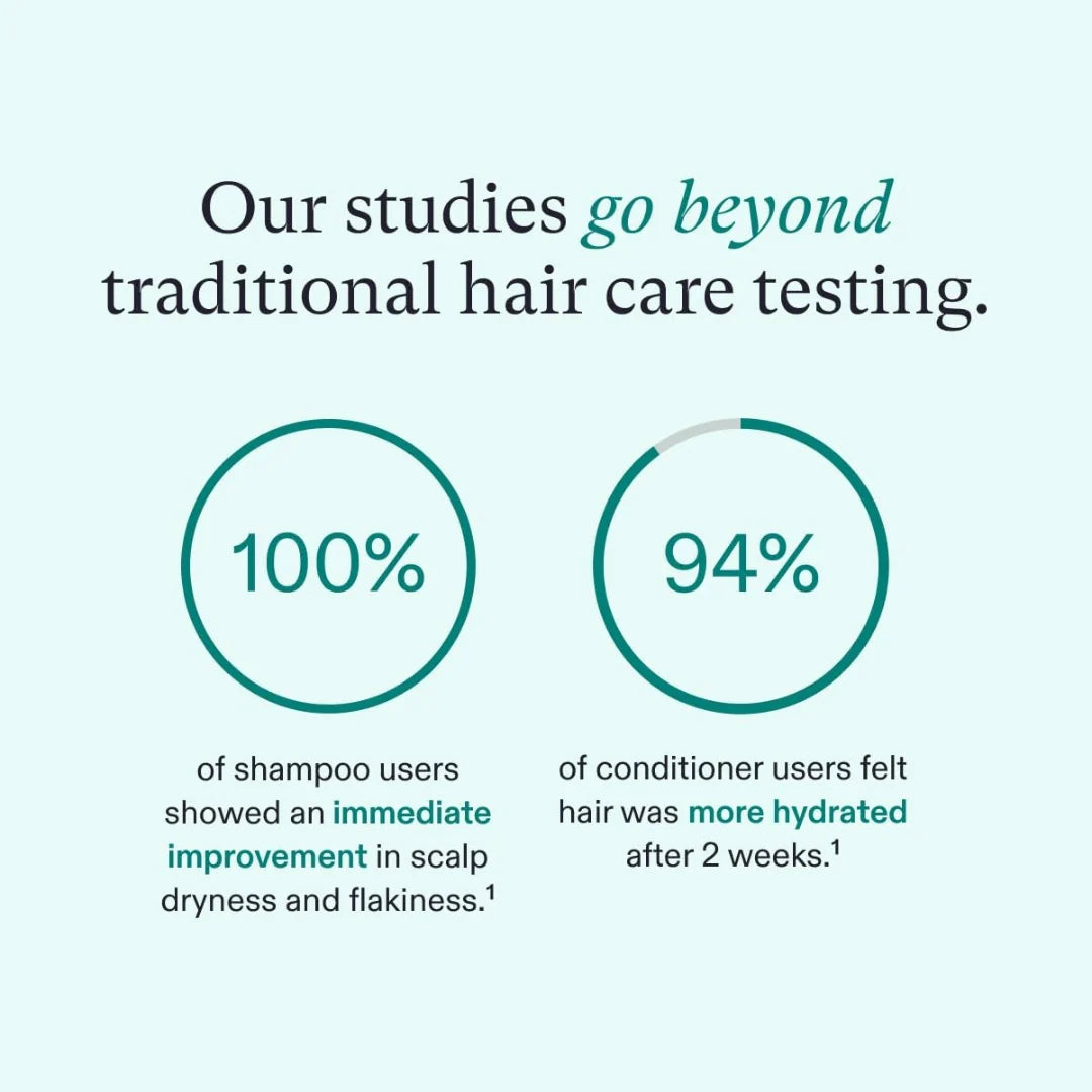 Harsh chemicals found in common shampoos over-cleanse the scalp whereas our shampoo washes away dirt, excess sebum, and impurities–without stripping the scalp. Our shampoo also regulates oil production while hydrating and nourishing for a more balanced scalp.